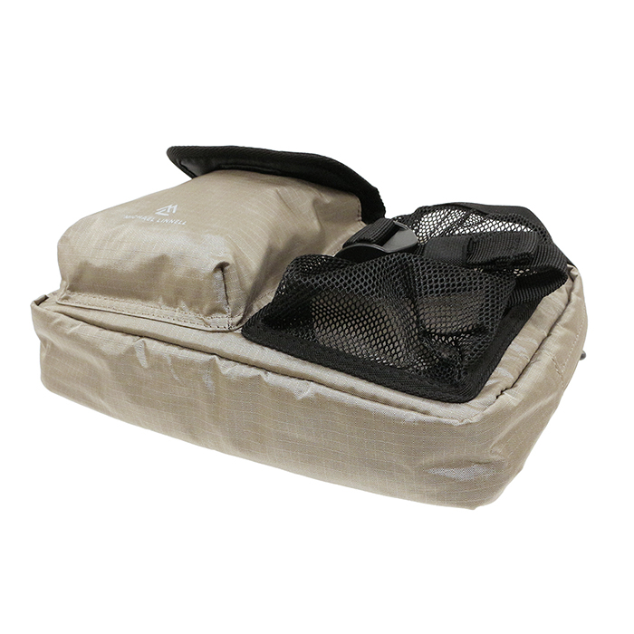 外部様式 /ベルクロ式フラップポケット×1・ベルト付きオープンメッシュポケット×1・背面オープンポケット×1