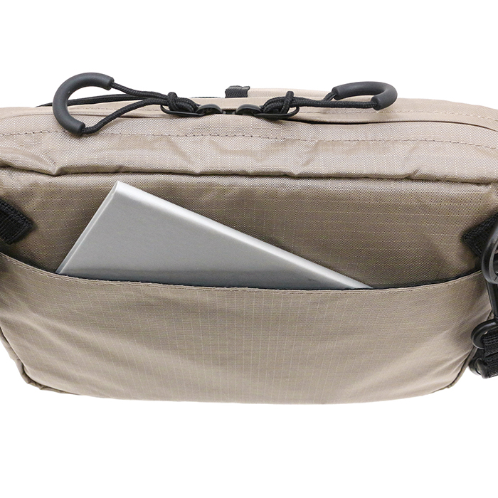 アウトドア用品にも採用される高強度で防水、軽量が特徴の生地を使用した「RIP STOP LINE」から、ミニショルダーバッグが登場しました。前面にボトルやすぐに取り出したい小物を収納できるメッシュポケットとフラップポケットがついており、見た目以上に収納力抜群なアイテムです。