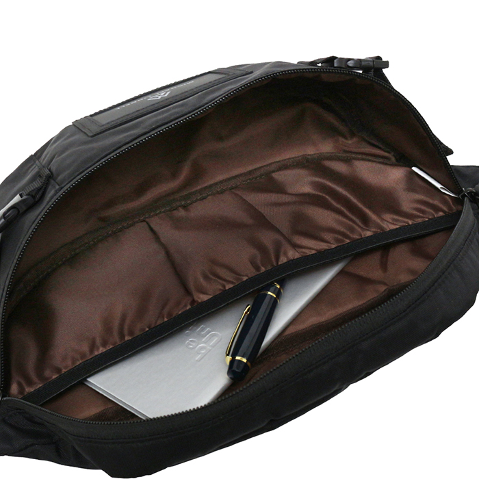 調節可能なショルダーはウエストバッグとしてはもちろん、ボディバッグとして斜め掛けにも対応できるのでスタイルに合わせた持ち方ができます。